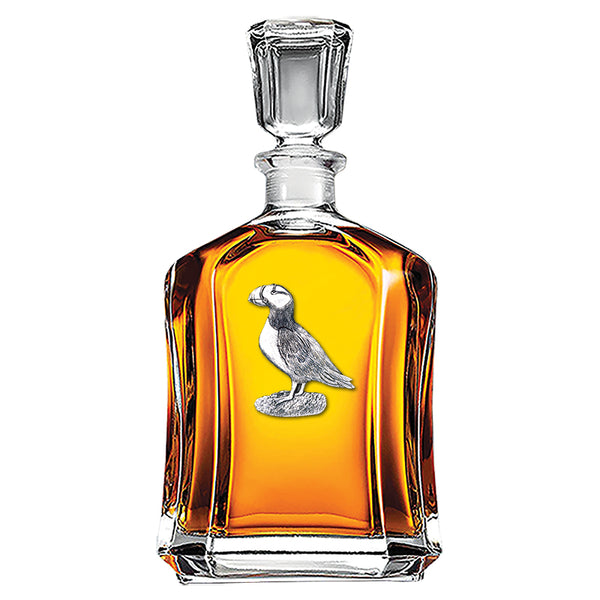 This 24 ounce glass decanter is embellished with a fine pewter casting. It is a great match with two Double Old Fashioned glasses. A great addition to any home bar! Made in USA.