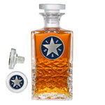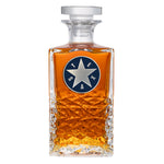 This 25 ounce glass decanter is embellished with a fine pewter casting. Be sure to match it with some of our Double Old Fashioned glasses. A great addition to any home bar!