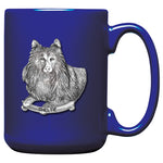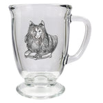 This coffee mug is decorated with a fine pewter casting. It is microwaveable and dishwasher safe with no heat cycle.. The glass coffee mug is 16 ounces, and the ceramic coffee mug is 15 ounces.