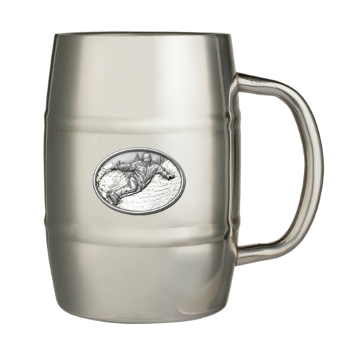 This 16 ounce stainless steel keg mug features a fine pewter casting. The details in this 3-d sculpted design are incredible! Made in USA.