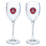 This is a set of two 12 ounce glass goblets with a fine pewter logo medallion bonded to the side.  It could be used to serve water, wine or other beverages. Made in USA.