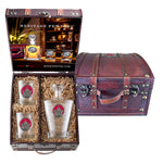This 3-piece set has been upgraded with a bigger, beautifully crafted chest box — designed with added space to hold your favorite bottle alongside the set.
