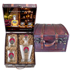 This 3-piece set has been upgraded with a bigger, beautifully crafted chest box — designed with added space to hold your favorite bottle alongside the set.
