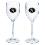 This is a set of two 12 ounce glass goblets with a fine pewter logo medallion bonded to the side.  It could be used to serve water, wine or other beverages. Made in USA.