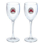 This is a set of two 12 ounce glass goblets with a fine pewter logo medallion bonded to the side.  It could be used to serve water, wine or other beverages. Made in USA.