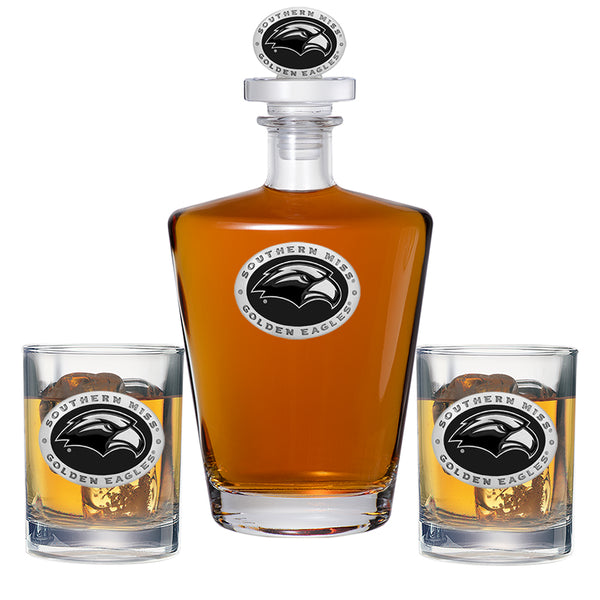 This 25 ounce glass decanter is embellished with a fine pewter casting and a 3-dimensional figure on top. Be sure to match it with some of our Double Old Fashioned glasses. A great addition to any home bar! Made in USA.