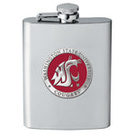 This 8 ounce stainless steel flask is embellished with a fine pewter casting. Assembled in USA.