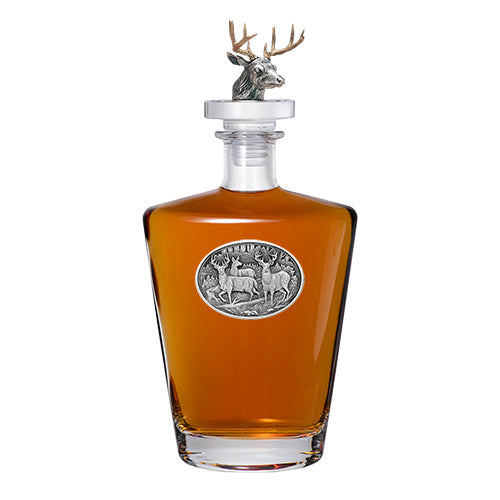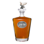 This 25 ounce glass decanter is embellished with a fine pewter casting and a 3-dimensional figure on top. Be sure to match it with some of our Double Old Fashioned glasses. A great addition to any home bar! Made in USA.