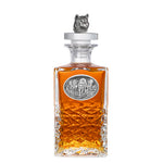 This 25 ounce glass decanter is embellished with a fine pewter casting and a 3-dimensional figure on top. Be sure to match it with some of our Double Old Fashioned glasses. A great addition to any home bar! Made in USA.